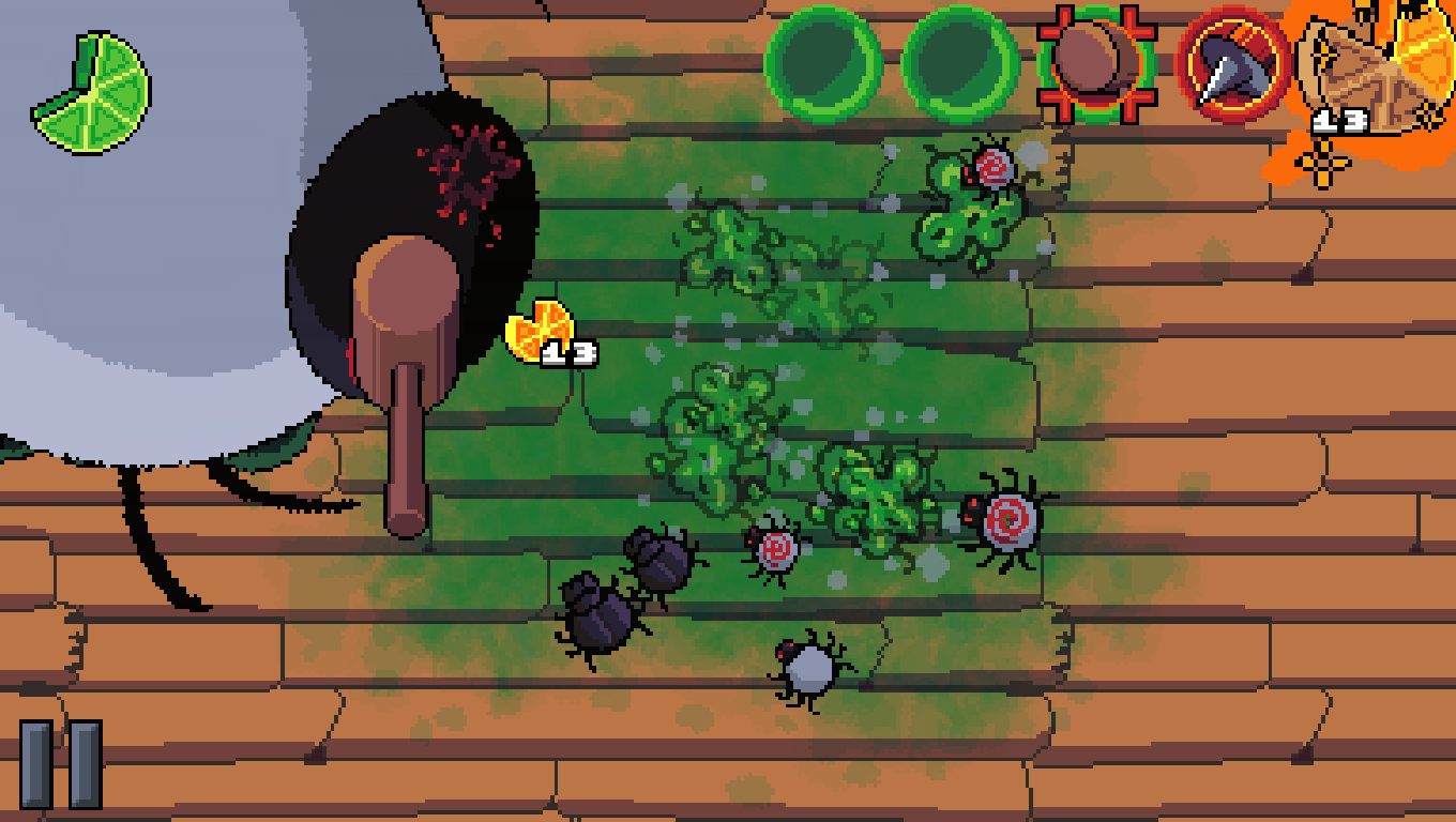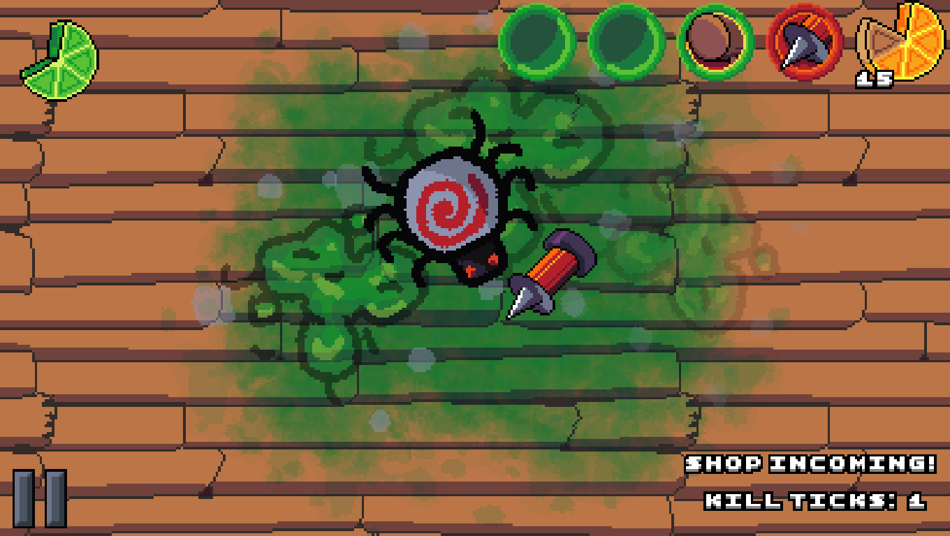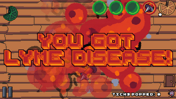 The Smashingly Satisfying Slaughtering game where the goal is to pop as many ticks as possible! There's an infestation of ticks filling up the screen and they're growing fast. If they get too big, they explode, spreading lyme disease and blood all over the table. Keep an eye on your Lime Meter, as when it runs out of juice, nothing can defend you from a tick explosion! Pop ticks with your trusty (yet slow) needle before they get too big to neutralize the threat. Or at least that threat. It seems you can never pop them all. When you Pop a Tick, your Lemon Meter fills up. If it fills up all the way, you get a lemon! Lemons are used as fuel for more powerful weapons, but be quick and precise! Your power gets depleted as you use a weapon, so pop multiple ticks at once or pop many ticks in quick succession to keep your lemon count up! If you run out of lemons, you may not be able to use your weapon anymore and have to use the needle instead. Master each weapon, and keep on top of the tick population! Learn the threat of each tick, and master the strengths of each weapon! And most importantly, Pop The Tick!